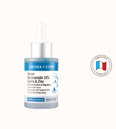 Hautement dosé en Niacinamide (vitamine B3), Zinc et Cuivre, ce sérum à l’efficacité prouvée resserre les pores, régule la sécrétion de sébum, prévient les imperfections, réduit les rougeurs et taches. Enrichi en acide hyaluronique hydratant, il unifie le teint et affine le grain de peau. Utilisé comme soin capillaire, le Niacinamide stimule la production de kératine, fortifie, redonne du volume aux cheveux et équilibre le cuir chevelu*. Pour une peau zéro défaut et des cheveux sublimés.