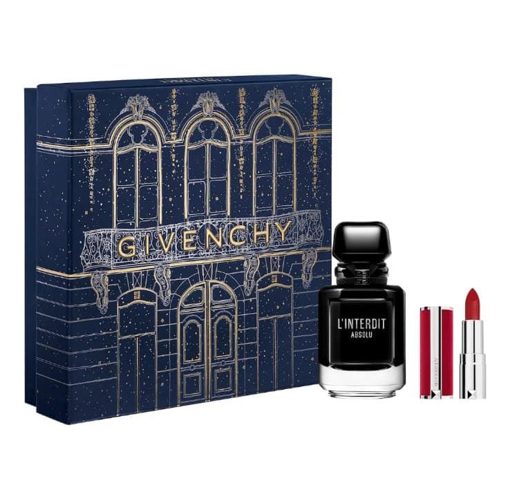 Pour les fêtes, laissez-vous porter par la magie d’un conte parisien : l’histoire du couturier Hubert de Givenchy. Comme l’emblématique créateur, osez réaliser vos rêves, sans oublier de couvrir vos proches de cadeaux grâce à un coffret parfum Givenchy, composé d’une Eau de Parfum L’Interdit Absolu 50 ml et d’un rouge à lèvres mini Le Rouge Deep Velvet N°37.