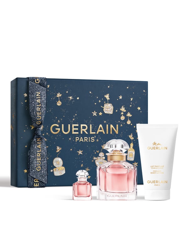 – L’Eau de Parfum Mon Guerlain (50 mL et une miniature 5 mL), une fragrance où la lavande rafraîchit l’enveloppante vanille et où le jasmin sambac, cueilli à l’aube, se mêle au bois de santal formant un sillage ambré et sensuel.